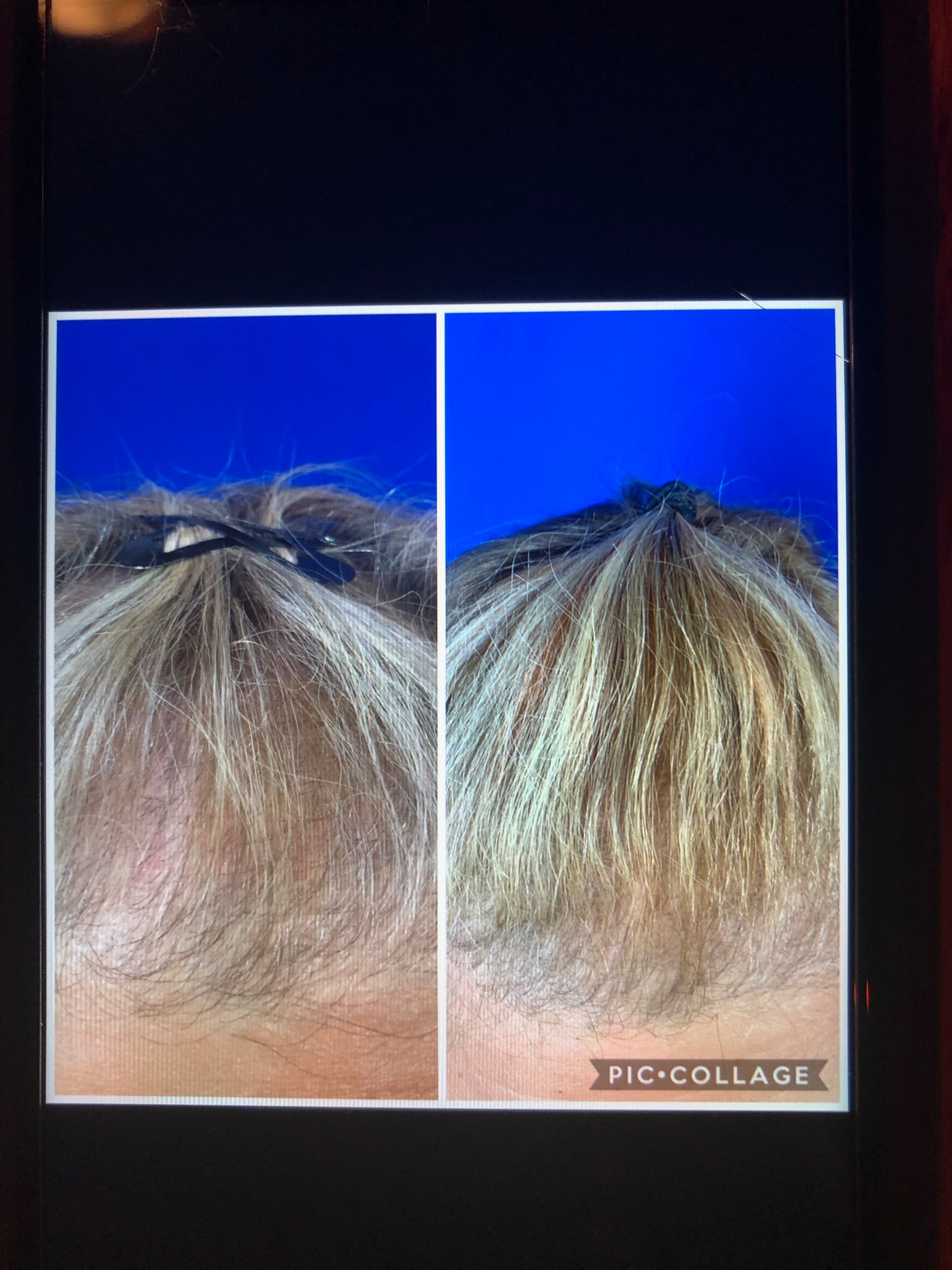 You see new hair growth with a noticeably fuller appearance even after just one treatment.  Photos are 6 weeks after 1st session.